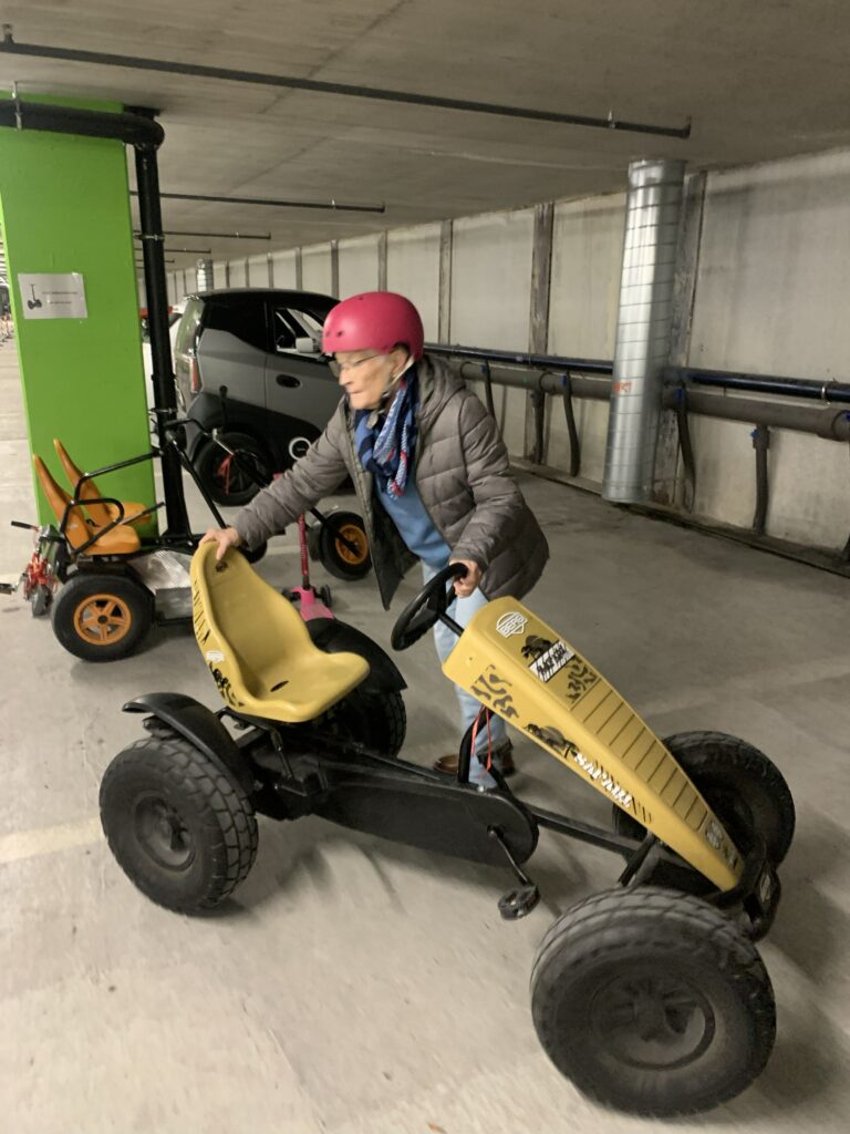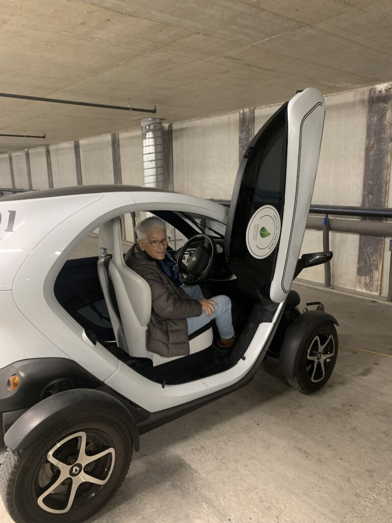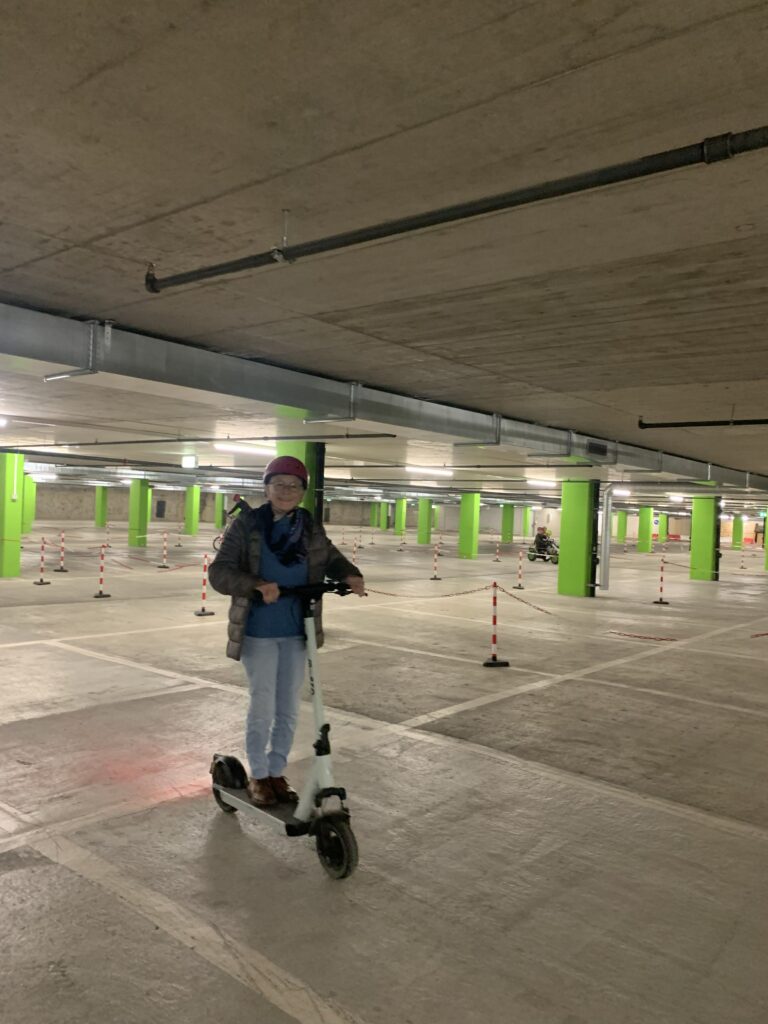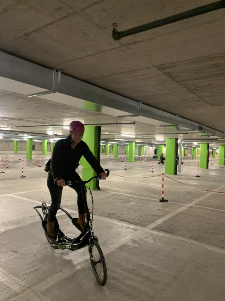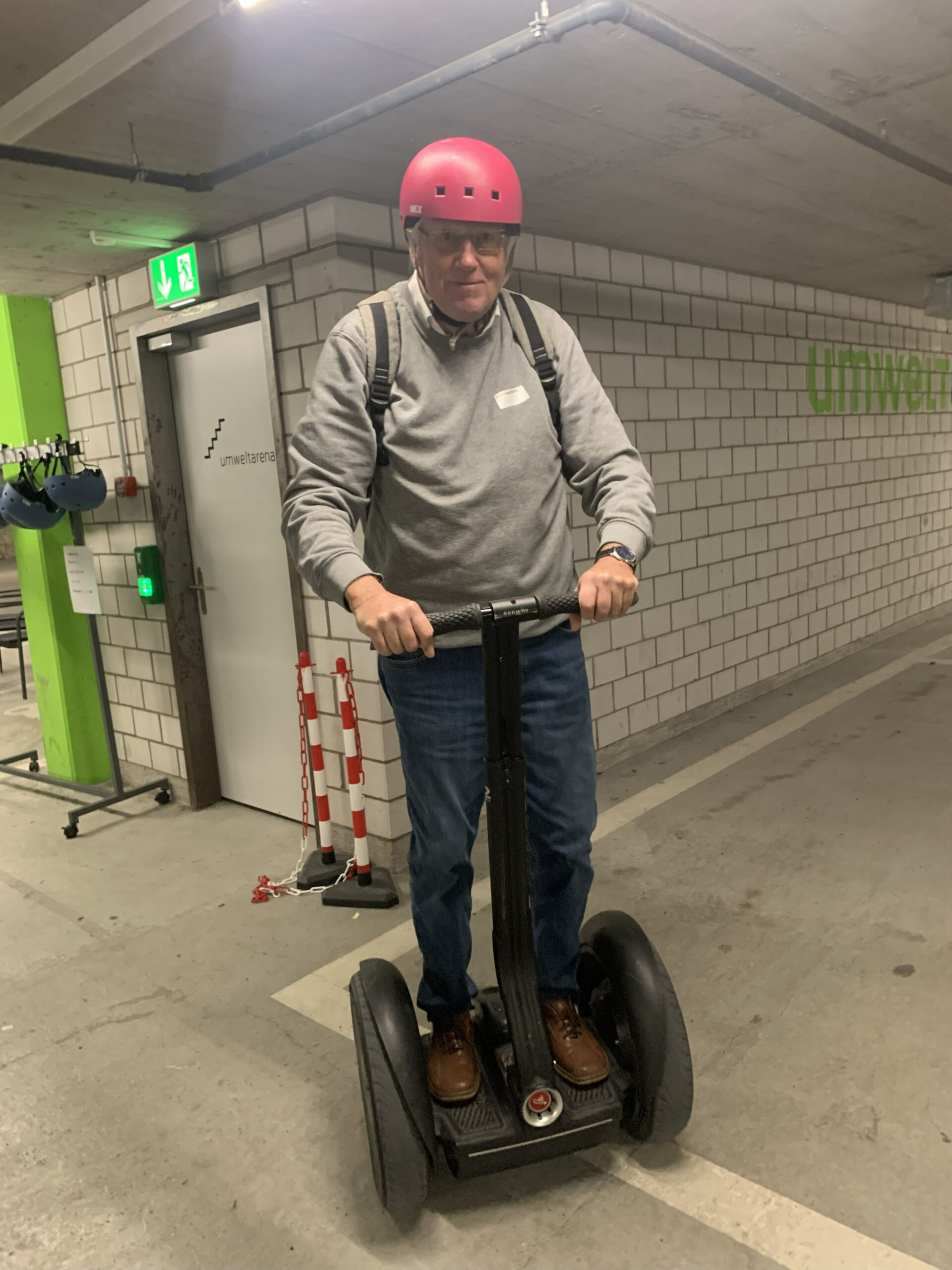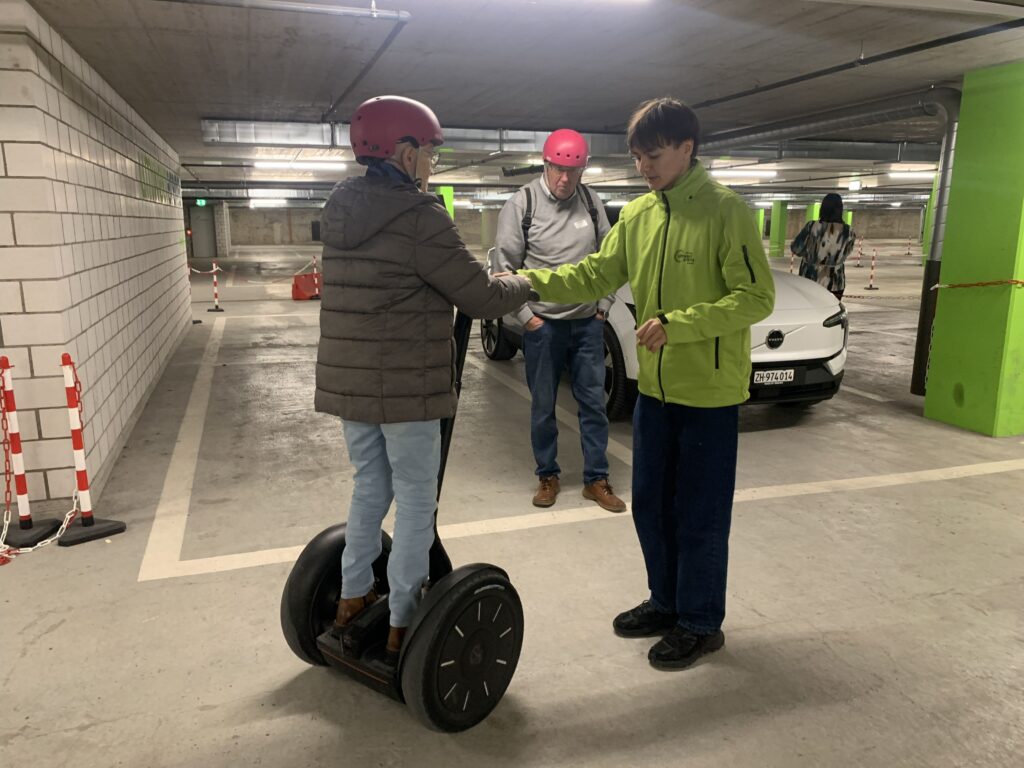 Gestärkt vom Mittagessen in der Cafeteria konnten wir am Nachmittag verschiedene Fahrzeuge wie Segways, Tandems, Trottinetts, Rikschas oder kleine Elektroautos ausprobieren. Wer wollte, hatte zudem die Möglichkeit, die Umweltarena nochmals individuell zu erkunden.